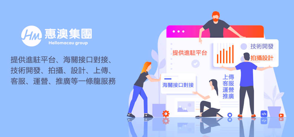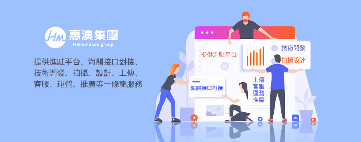 ● ● ● ● ● ● 業務介紹 電商服務 B2B外貿銷售已遇瓶頸?B2C零售港澳市場不夠吃? 沒有團隊經營其他市場?惠澳幫您一次解決, 澳門惠澳豐富的國際經驗、十幾年中國的互聯網經驗, 協助港澳中小企業接軌更大的銷售市場,港澳的精品不該被埋沒! 查看更多 零售方案 B2B外貿銷售已遇瓶頸?B2C零售港澳市場不夠吃? 沒有團隊經營其他市場?惠澳幫您一次解決, 澳門惠澳豐富的國際經驗、十幾年中國的互聯網經驗, 協助港澳中小企業接軌更大的銷售市場,港澳的精品不該被埋沒! 查看更多 推廣運營 如何增進銷情? 如何擴展顧客規模 ? 惠澳擁有豐富的多渠道資源,不斷增加商家的曝光率,幫助商品提高銷情, 輕鬆提升品牌影響力。 查看更多 商業服務 服務式及虛擬辦公室服務 多功能會議及洽談設施 我們致力於提供超越客戶期望的優質服務,使您可以馬上專心處理業務運作。 查看更多 積分系統 增加全新推廣渠道,提高客戶忠誠度。 特選客戶尊享的獨特旅遊禮遇、 、旅遊計劃服務,如尊享機票預訂、綜合酒店、購物、餐飲、娛樂、 綜合旅遊支援等合作商戶的產品及服務。支持定制系統。 查看更多